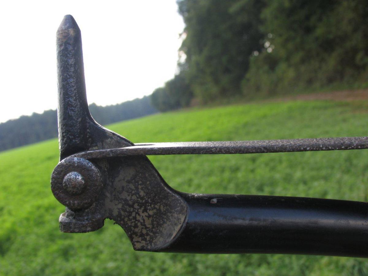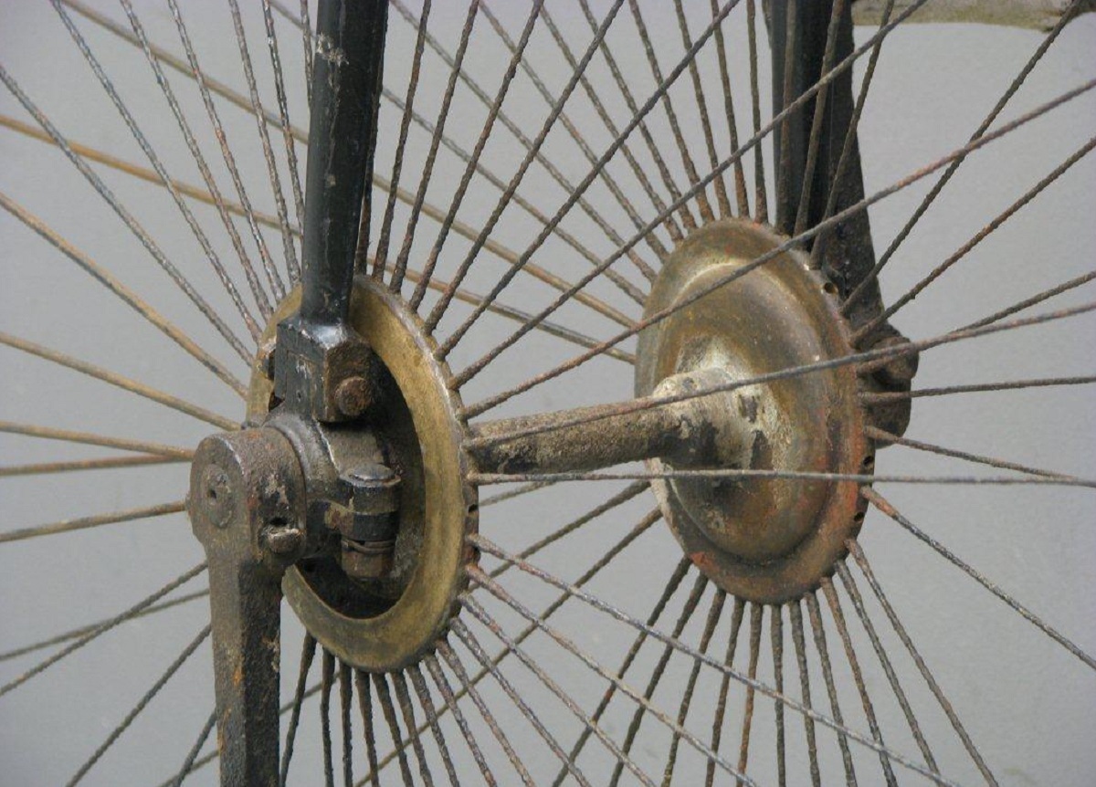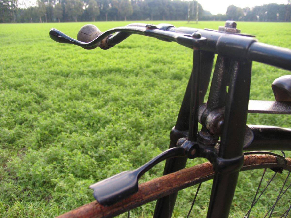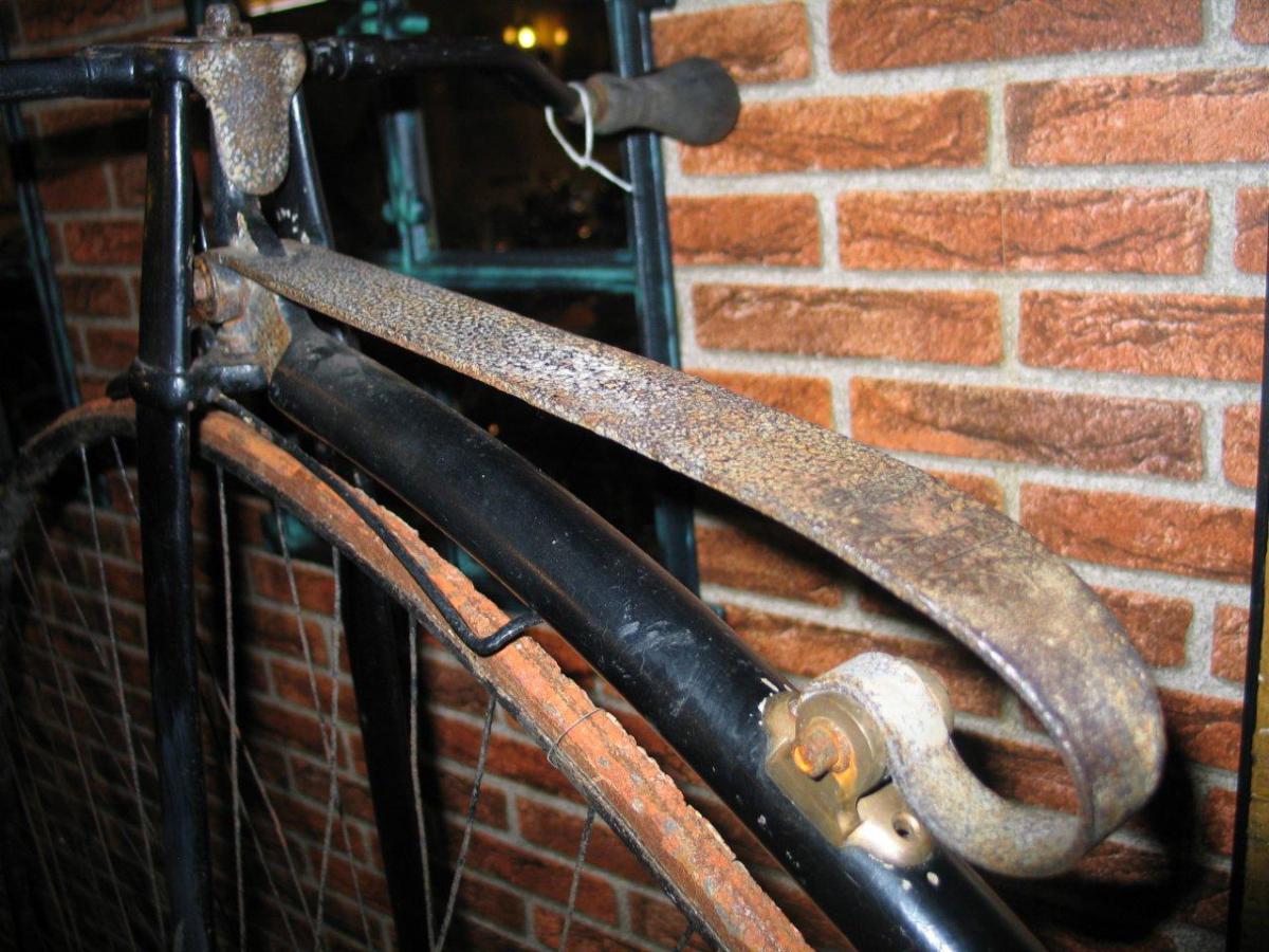 This 56 inch ordinary bicycle is another Duplex Excelsior Hollow Forks (DEHF) from Bayliss, Thomas Co. It is in the collection of Yesterday's, who have this one for sale (2013). These pictures are made by me and Markus Beer. Rear hub of this ordinary is not original, but look at the typical Bayliss, Thomas spring (introduced in 1883) and the wooden grips, covered with leather. The dropped handlebars give an indication that it was built in the second half of the 1880's.